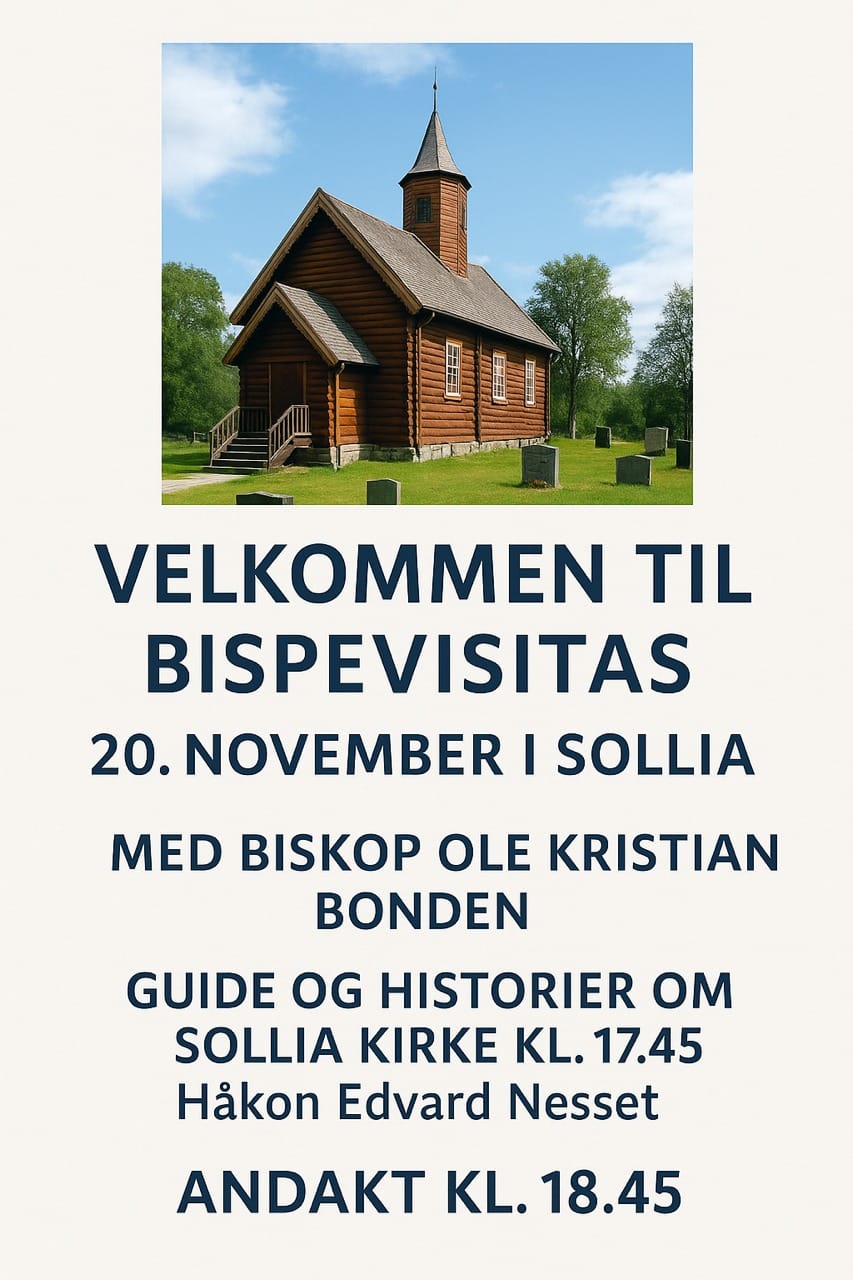 Torsdag 20. november kommer biskop Ole Kristian Bonden på bispevisitas. Han skal besøke flere steder i Sollia, men først og fremst Sollia kirke der alle er hjertelig velkommen klokka 17.45.