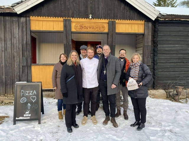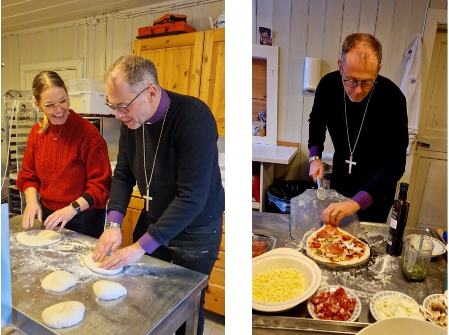 Sammen gjennomgikk de to hele prosessen med å lage surdeig og biskopen fikk med seg ferdig brød og selvsagt surdeig som han kan bruke når han skal bake surdeigsbrød hjemme på sitt eget kjøkken. Det var jo litt spesielt å ha en så viktig person på kurs, sier Miro, men det var en veldig hyggelig opplevelse.