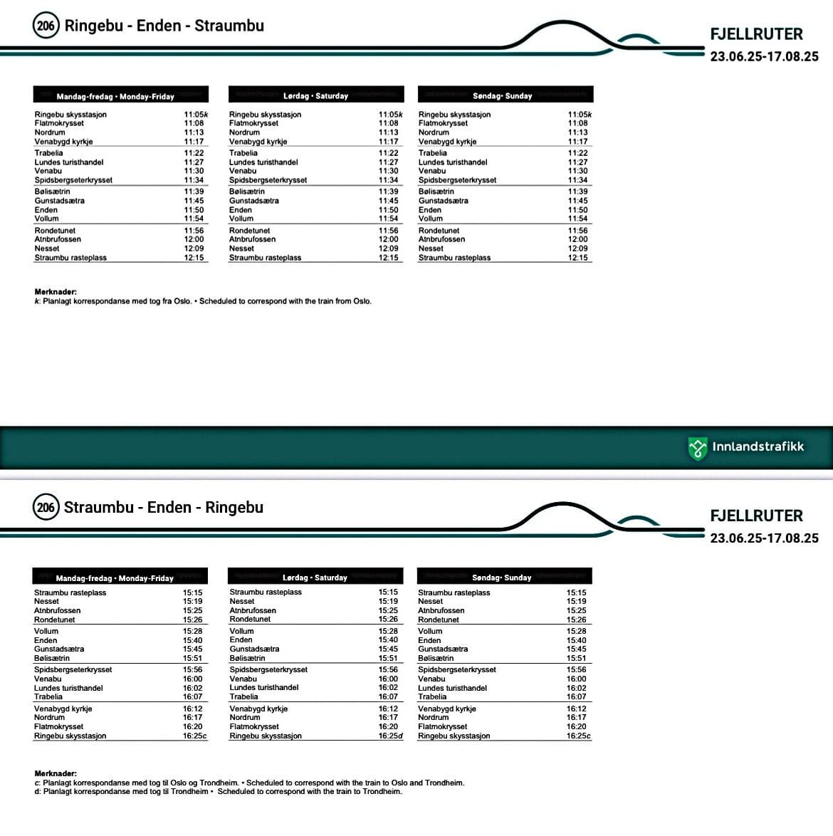 Det er noen som lurer på busstidene mellom Ringebu og Strømbuplassen, så her kommer de: Ruta kjøres hver dag til og med 17. august, klokka 11.05 fra Ringebu stasjon og fra Strømbuplassen tilbake til Ringebu klokka 15.15. Ruta er lagt opp slik at det korresponderer med et eller annet tog både om formiddagen og ettermiddagen, så med litt planlegging er det fullt mulig å kjøre kollektivt til Sollia fra både Trondheim og Oslo i sommerferien.