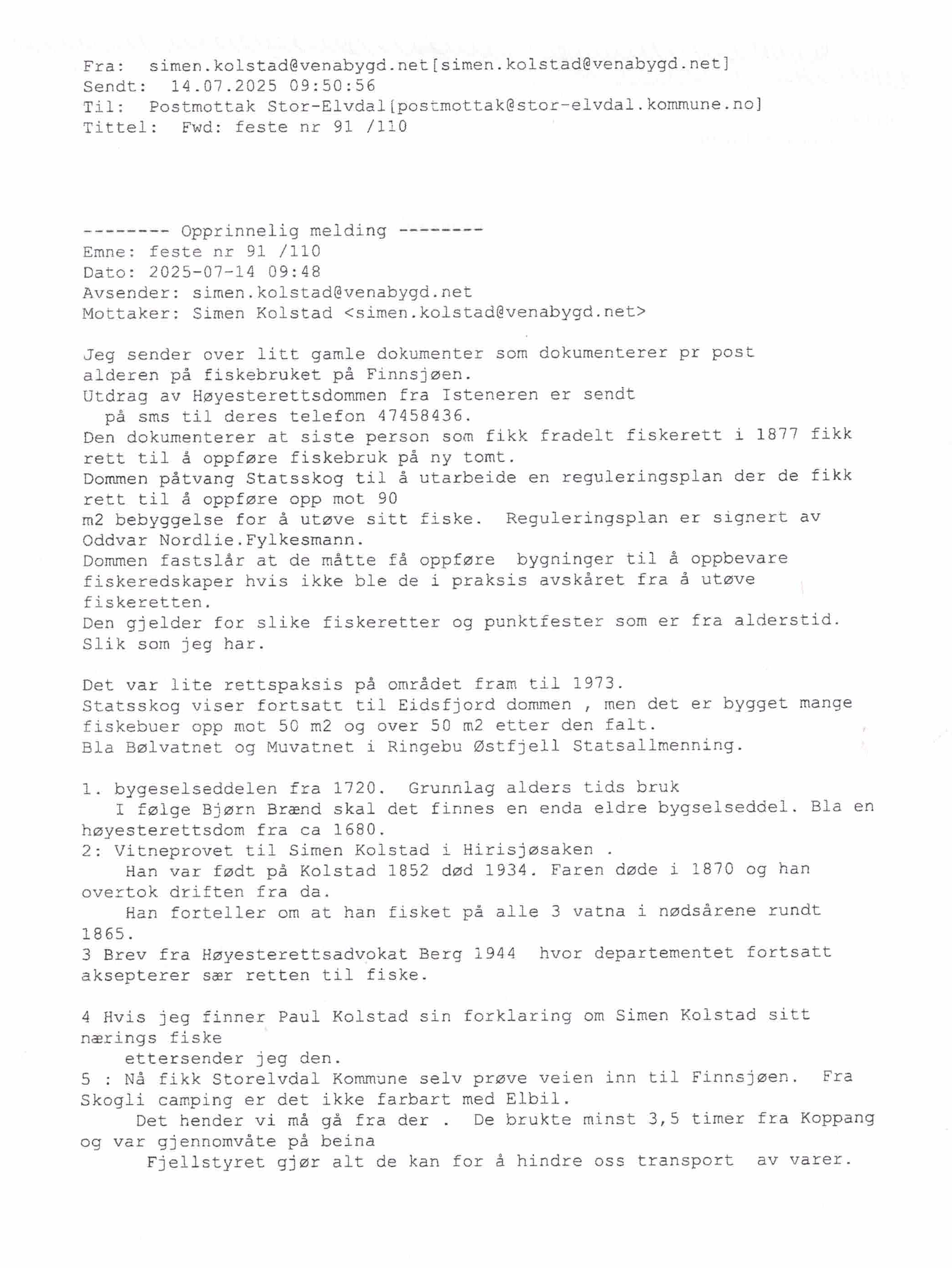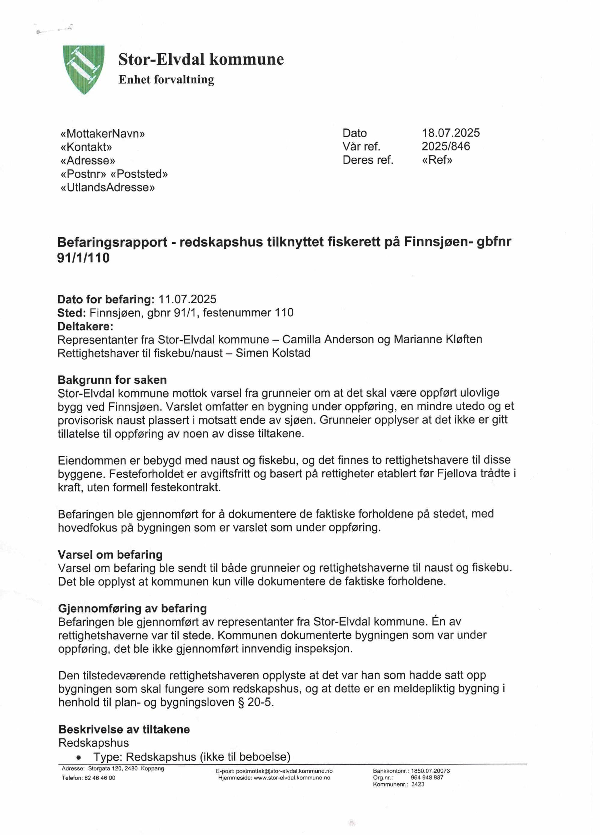 Befaringsrapporten fra Stor-Elvdal kommune og e-posten fra Simen Kolstad er offentlige dokumenter og du kan lese dem her: