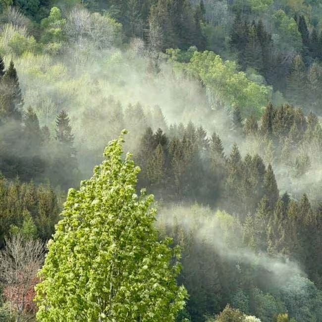 I gode blomstringsår med vind og tørrvær kan pollenet ses som skyer i dalsidene.