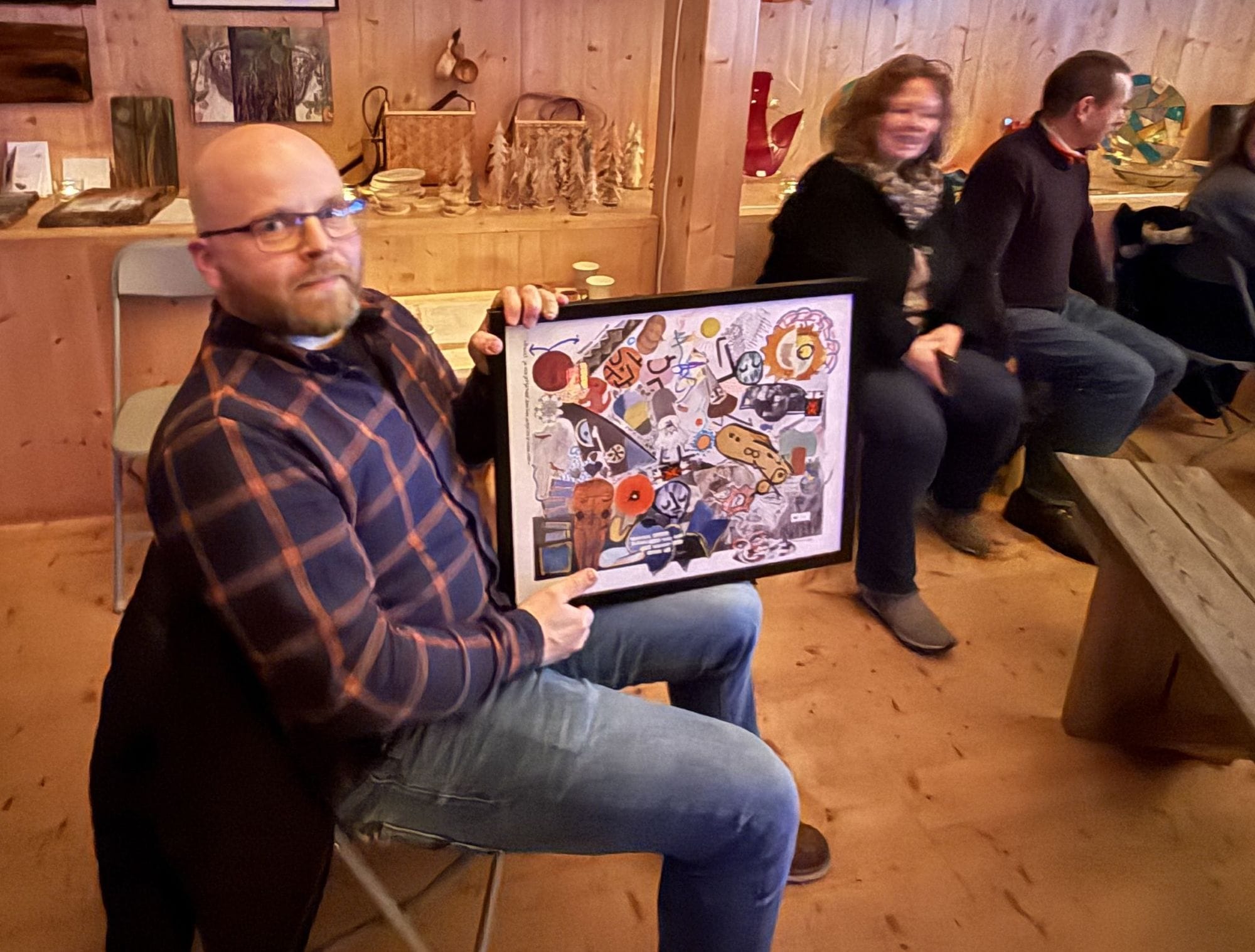 Den ble auksjonert bort, og etter en heftig budrunde fikk Jørn Sverre Lien tilslaget på det unike kunstverket for 2000 kr. Ifølge Jørn Sverre skal det henges opp på en framtredende plass i butikken slik at alle kan få se det (helt gratis) på nært hold.