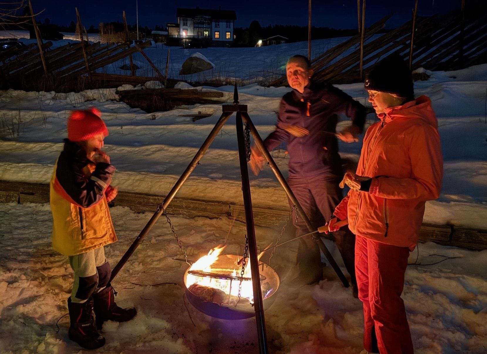 Mellom de musikalske innslagene var det fint å samles rundt bålpanna. Ute ble det grillet pølser og innendørs ble det servert kaker og kaffe.