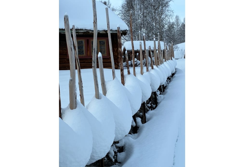 Her har snøen skapt et flott kunstverk av skigarden på Amperhaugen