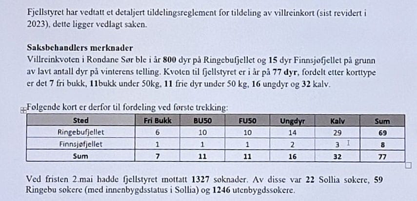 Tirsdag kveld var det møte i Sollia fjellstyre. Det var en ganske kort sakliste, der blant annet trekning av reinsdyrkort sto på sakskartet.