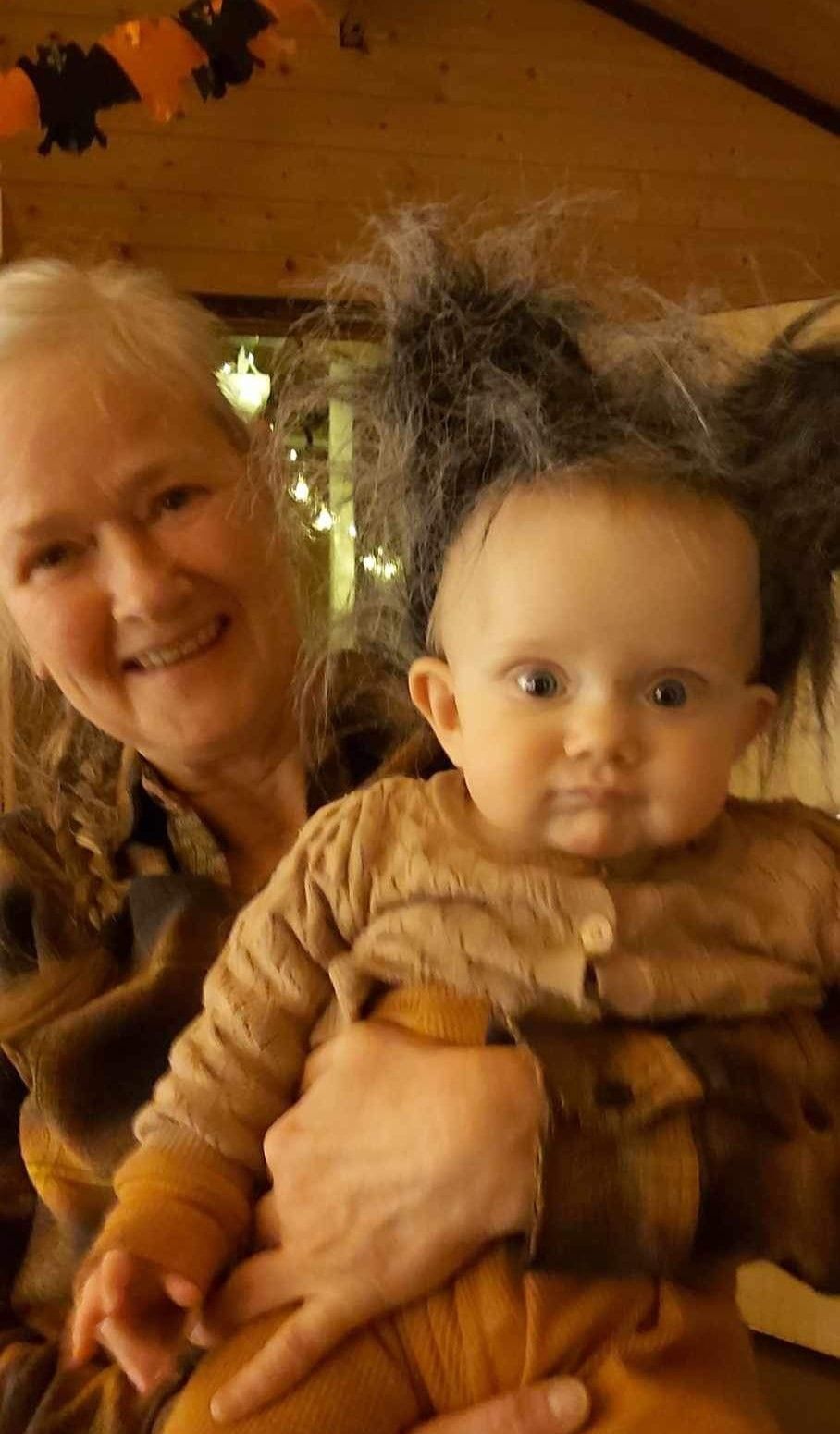 Vesle Frøya Brænd hadde gjort sitt beste for å se litt skummel ut, men var slett ikke redd så lenge mormor, Inger Bente Simonsen, var i nærheten.