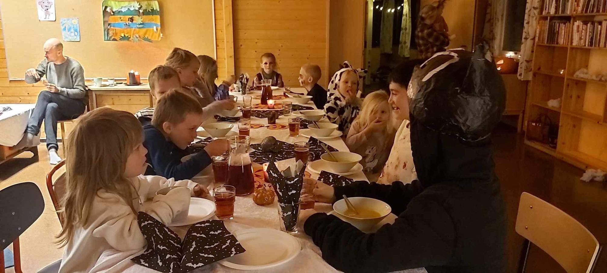 Mange unger, hekser, spøkelser og tigre hadde møtt opp for å være med på skattejakt, skummel eventyrfortelling og for å spise halloweenmat.