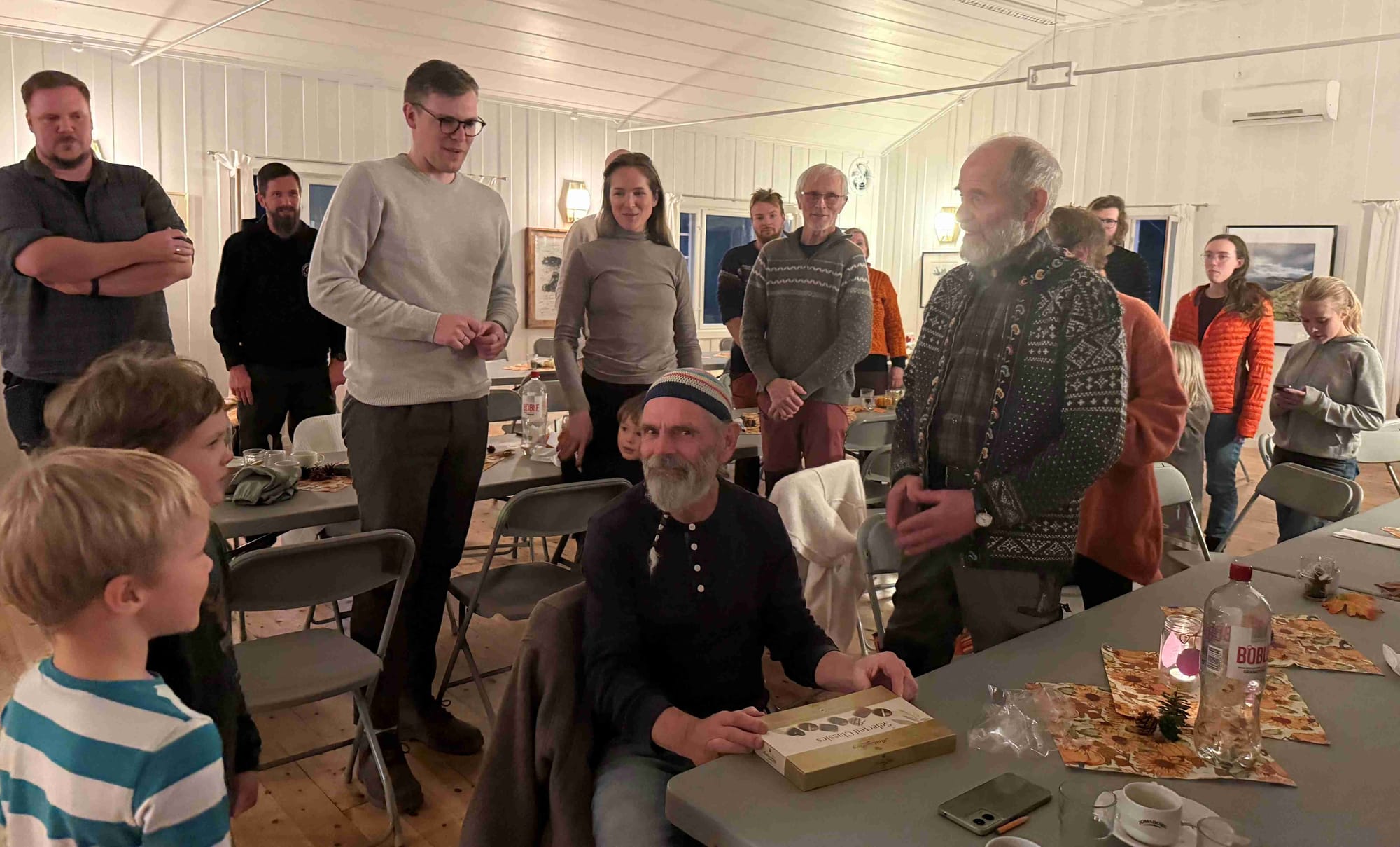 I salen satt også en 70-årsjubilant, Jan Ueland. Selv om han ikke ønsket noe stort oppstyr, fikk han både gratulasjoner og bursdagssang. Velfortjent oppmerksomhet til en som ofte stiller opp i bygda når det trengs.