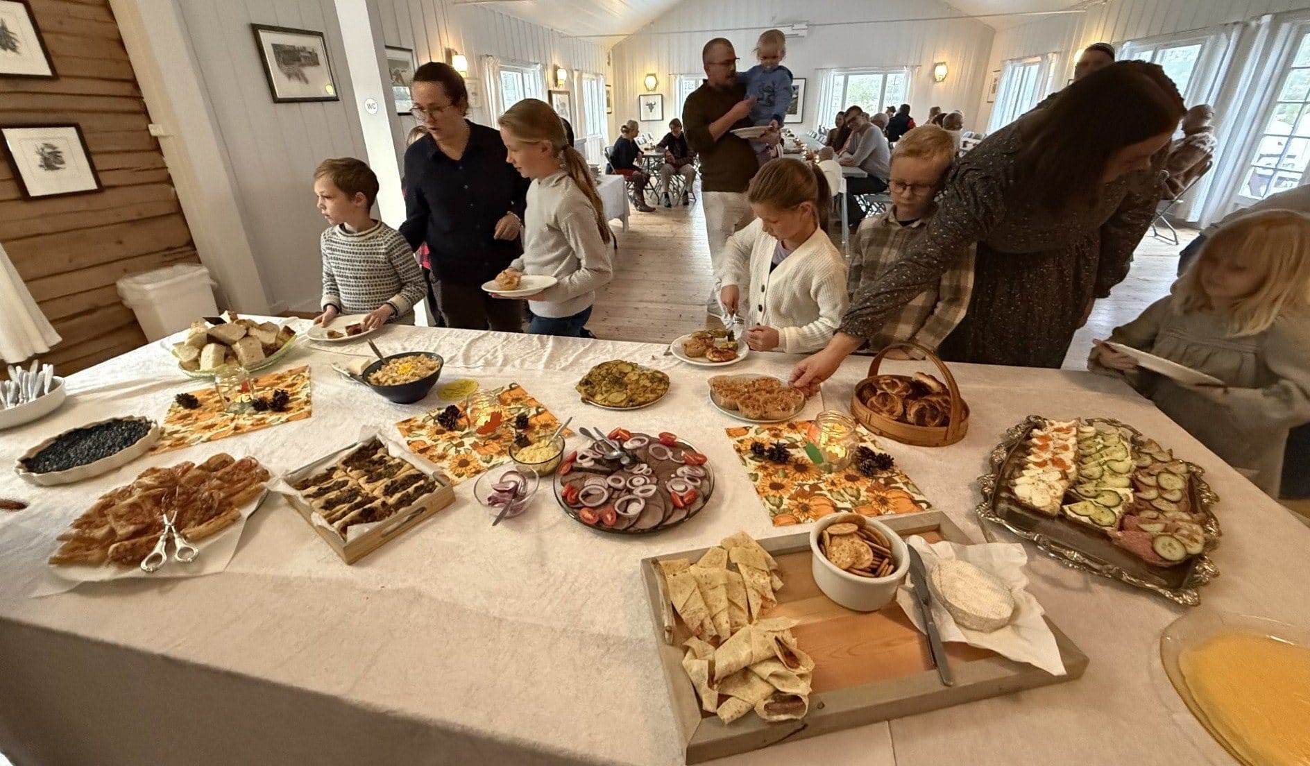 Deretter var det tid for mat. Det ble fort folksomt rundt mat- og kakebordene, som hadde et imponerende utvalg av både søtt, salt, kaldt og varmt. Senere ble det quiz, og her var nivået høyt. Til slutt endte hele tre lag på delt førsteplass med 19 av 20 riktige.