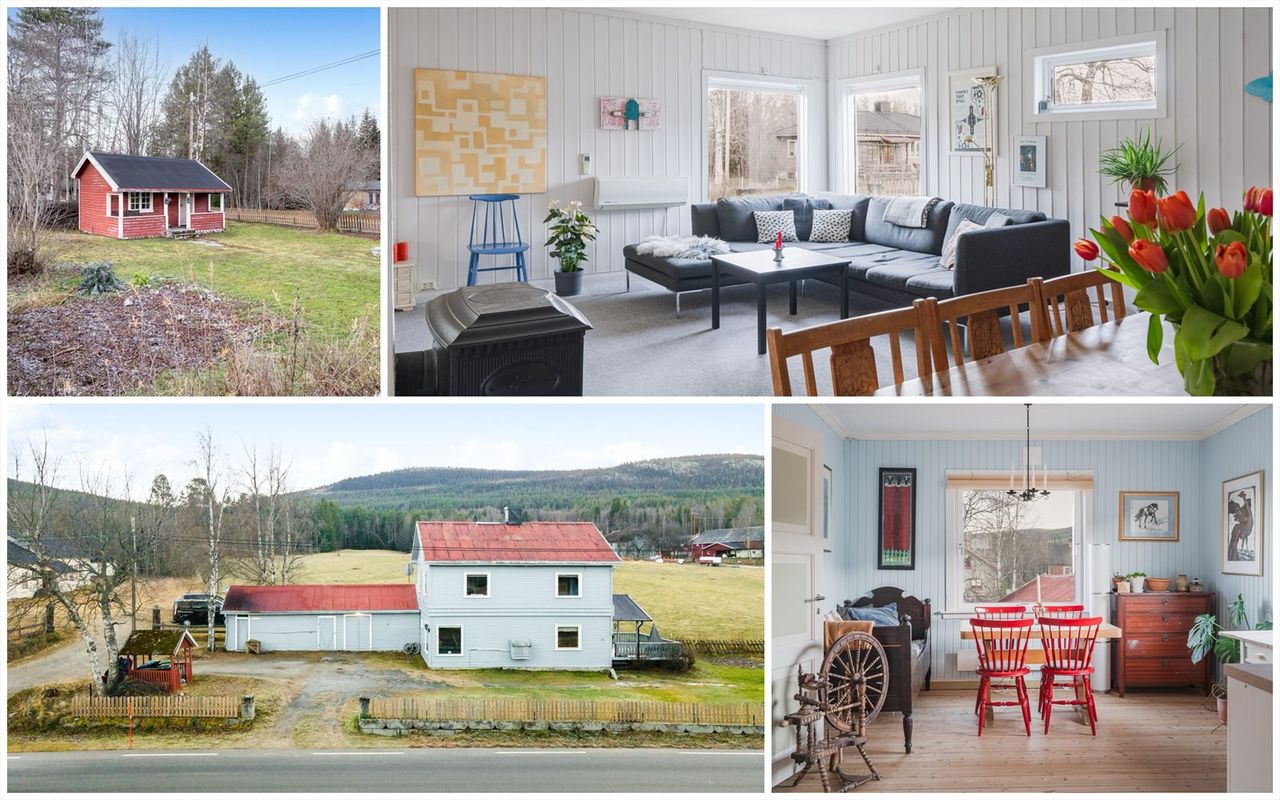 Landlig og solrik eiendom i naturskjønne omgivelser. Stor enebolig med egen sjarm og integrert verksted/garasje. Anneks!