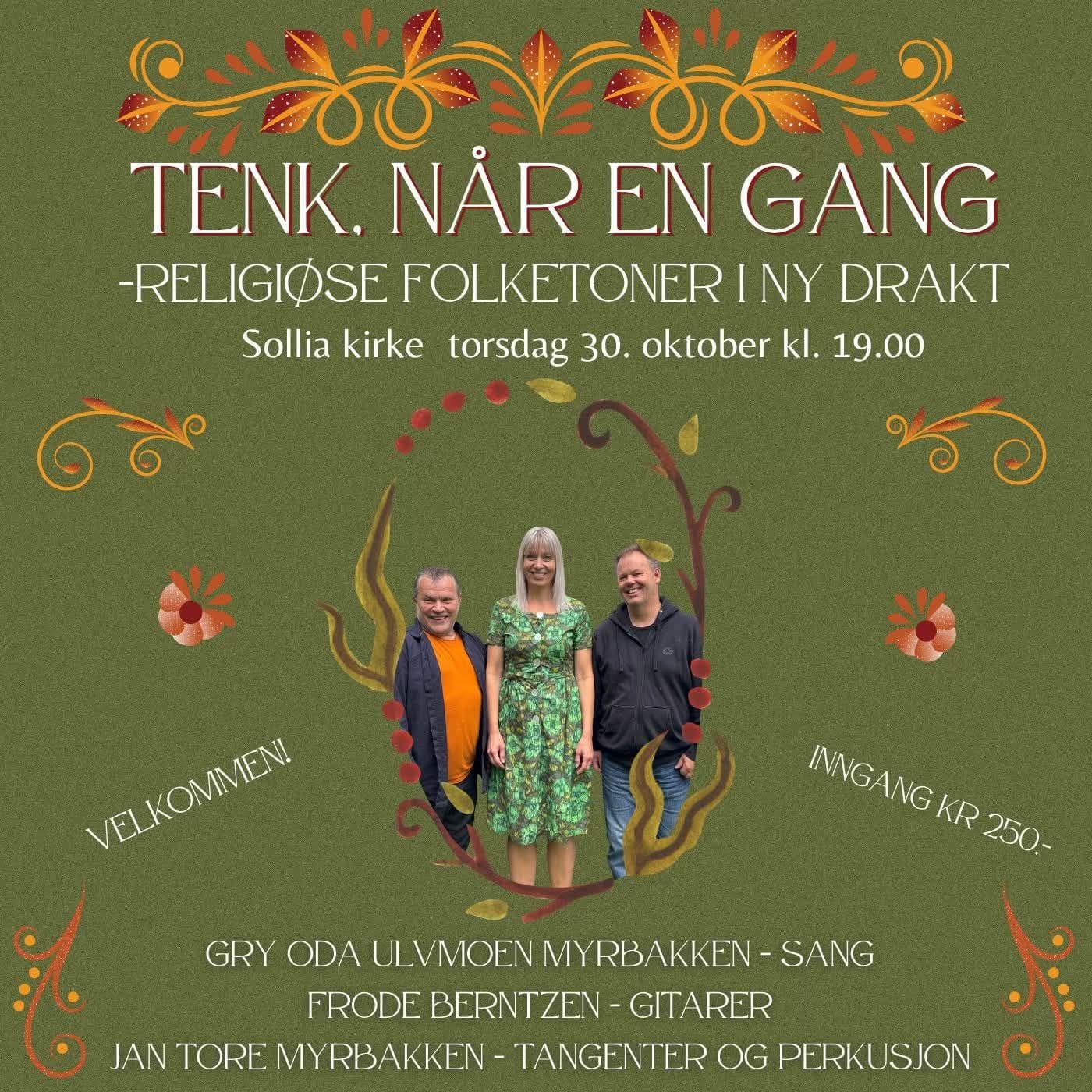 I denne konserten ønsker vi å framføre de gamle religiøse folketonene på VÅR måte. Vi dykker inn i de gamle skattene og gjør dem til våre på nytt, i og for den tida vi lever i. Dette forsøker vi å gjøre uten å rive i stykker melodienes egenart og opprinnelige kraft. I vår musikalske tilnærming ligger det også en slags filosofering rundt betydninger folketonene kan ha hatt for folk i sin opprinnelige form. For å hjelpe oss til å ta dette perspektivet har vi flettet inn tekster og dikt som kan belyse i konserten. Vår besetning skaper et variert og dynamisk lydbilde som utforsker stemninger, klanger og utrykk.