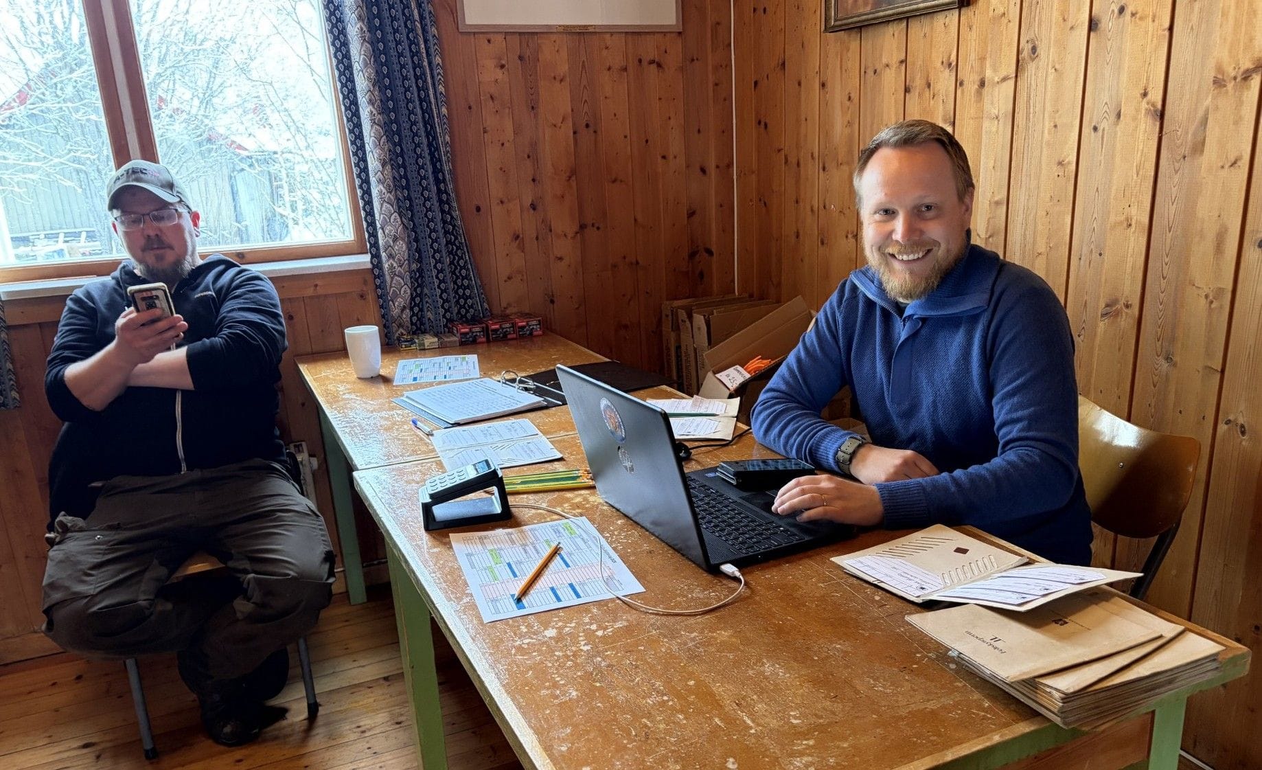 Ola O. Brænd og Magnus Brænd i sekretariatet hadde hendene fulle med registrering og føring av resultater.
