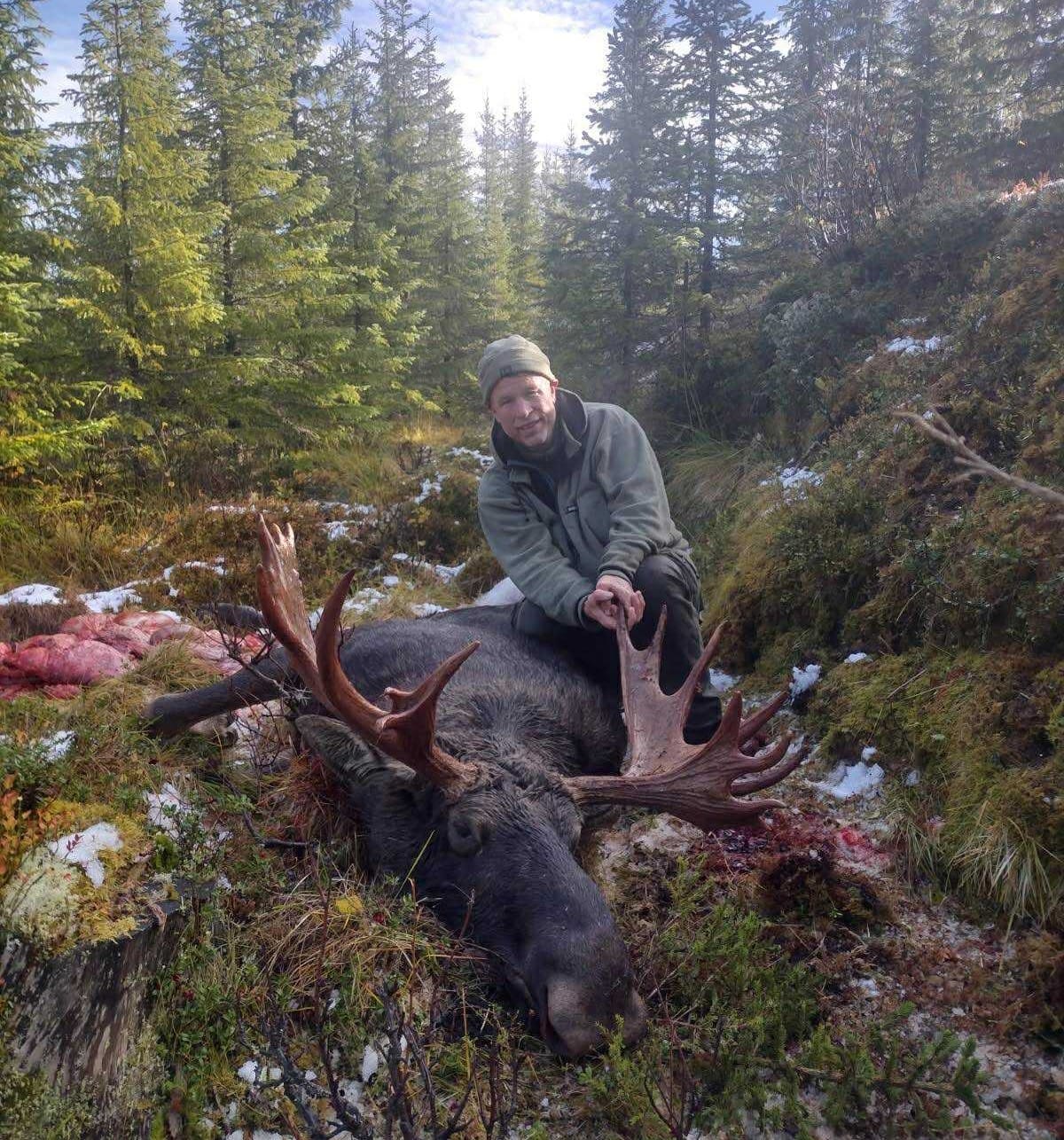 Det var en sværing Tord Strand lokket inn på skuddhold her om dagen. Bringen ble skutt i Svartåsen og hadde 18 tagger. Det blir et skikkelig trofé å henge på veggen når Jan Helgesen får preparert og montert geviret!