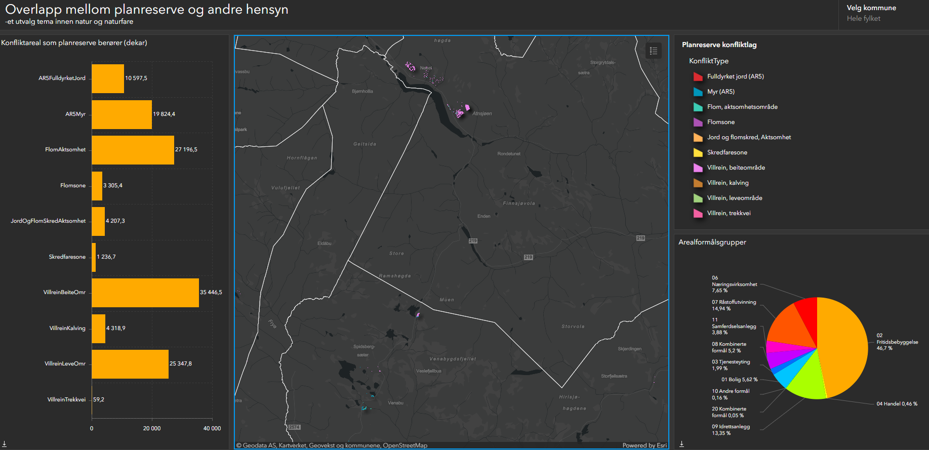 Innlandet fylkeskommune er i gang med å kartlegge hvordan vi bruker arealene våre og har utarbeidet et arealregnskap. Et arealregnskap skal gi oss en status på hvor mye vi legger beslag på av arealer og natur. I tillegg skal det fortelle oss hva vi planlegger å gjøre med arealene våre og bidra til bedre beslutninger om fremtidig arealbruk.