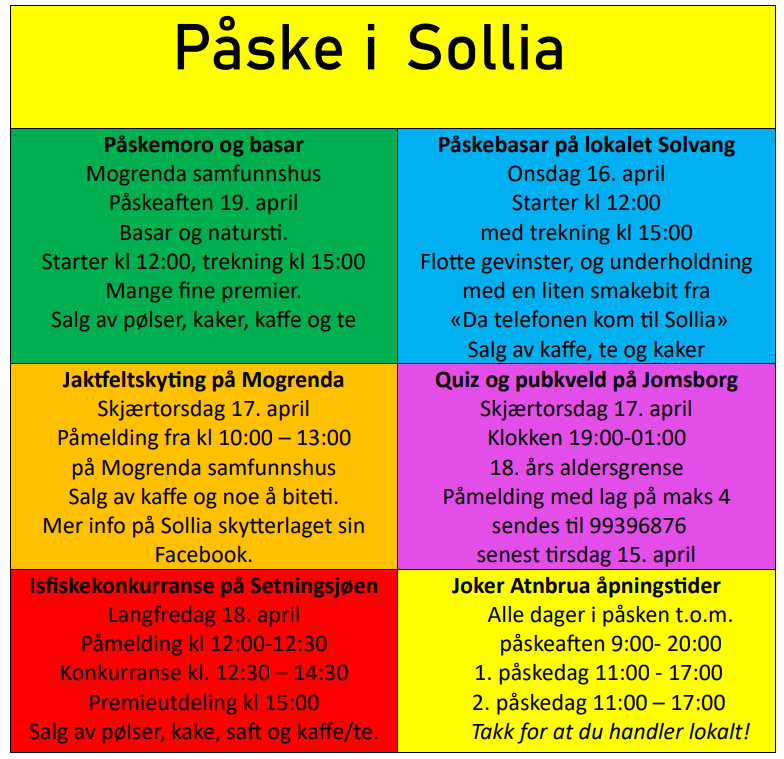 Program for påsken i Sollia