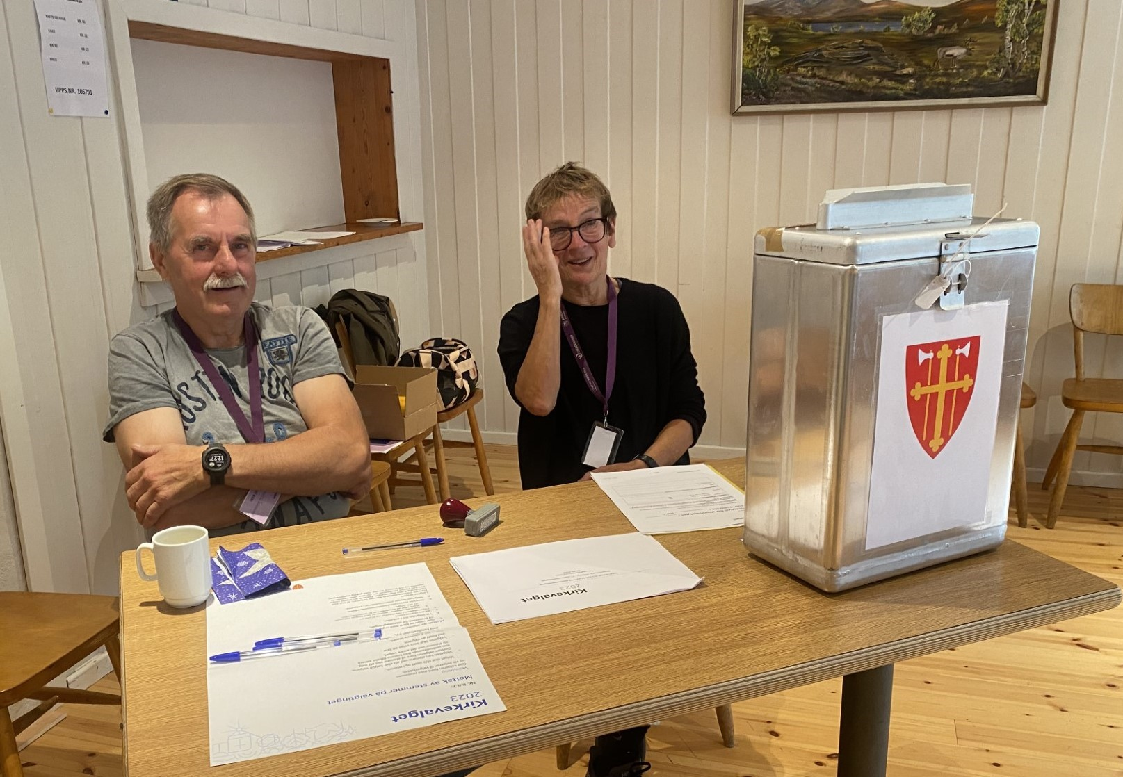 Kirkevalget foregikk samtidig som kommune- og fylkestingsvalget. Her var det Per Gunnar Rønningen og Birgit Skinderhaug som holdt ordene i sakene. Ole Anton Brænd måtte sanke sau på mårråkvisten, men kom senere på dagen for å avløse Birgit.