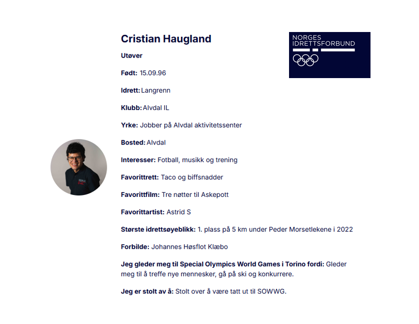 Onsdag var første konkurransen for Cristian Haugland i Special Olympics. Cristian gikk 10 km fri teknikk. Cristian valgte å gå klassisk stil og tapte nok litt på det på sugende vårsnø i Pragelato. Men han gikk inn til en flott 8. plass. Resten av teamet fra Sollia koser oss og heier og hoier så godt vi kan. På fredag skal Cristian gå 5 km og kanskje stafett på lørdag.