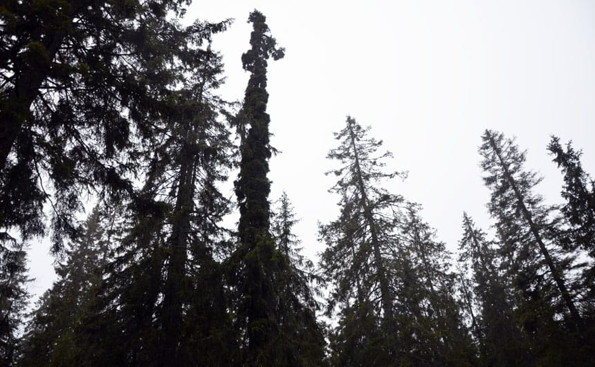 Det er en søylegran (Picea abies forma columnaris) der kvistene ikke går utover, men tvinner seg oppetter stammen. Den kan spre seg på samme måte som vanlig gran, men bare 30 % av avkommet skal i teorien bli nye søylegraner, så den er et svært sjeldent syn i skogen.