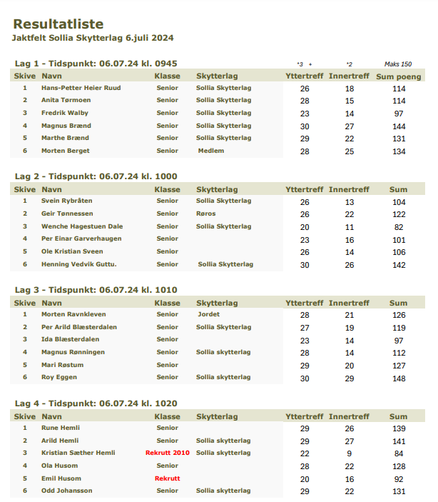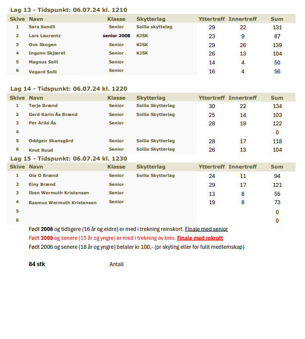Det var 84 deltagere på jaktfelten 6. juli. Henning Isaksen vant reinskortet i loddtrekninga blant de som hadde deltatt minst 3 ganger på jaktfeltskyting i år.