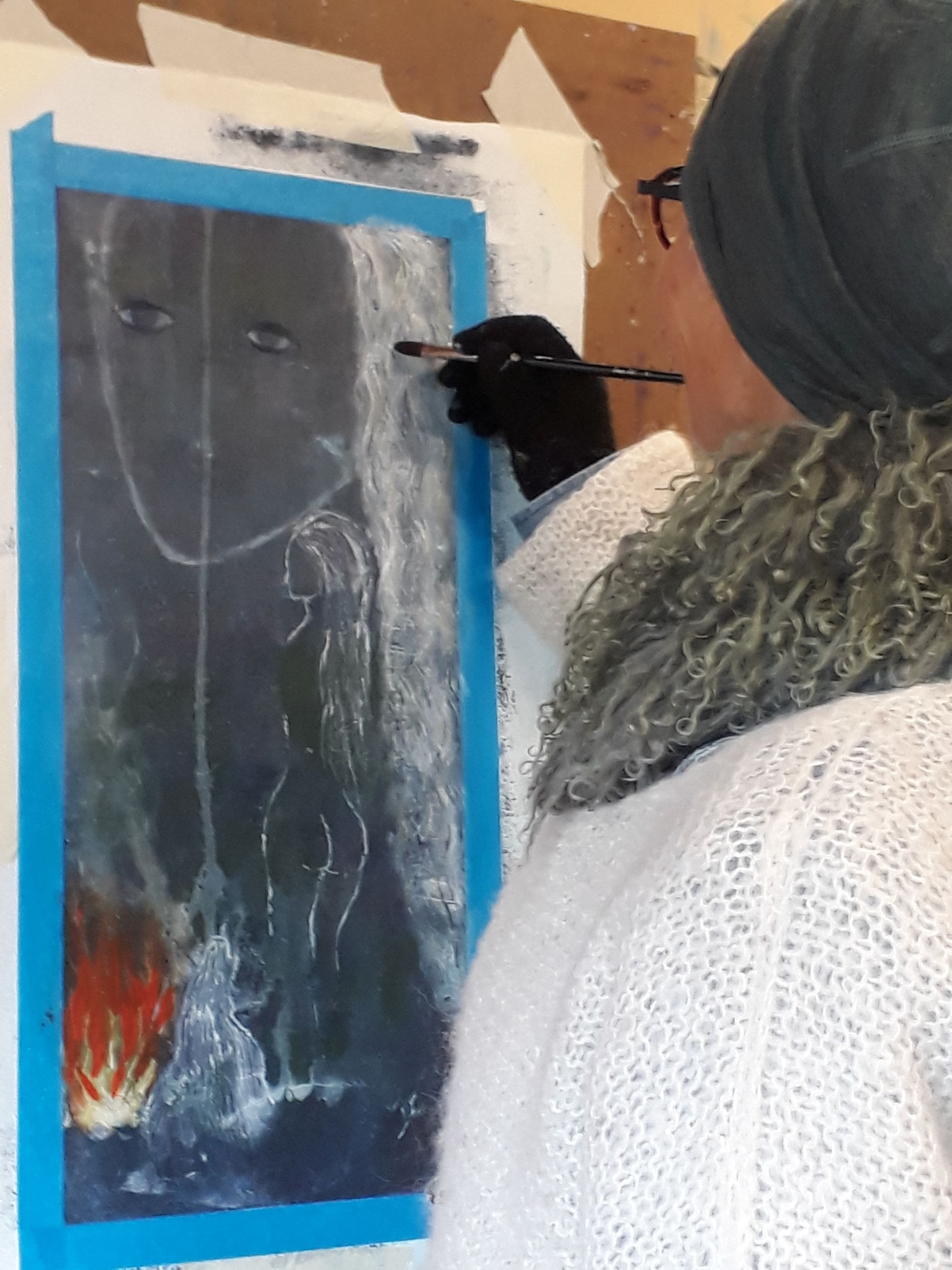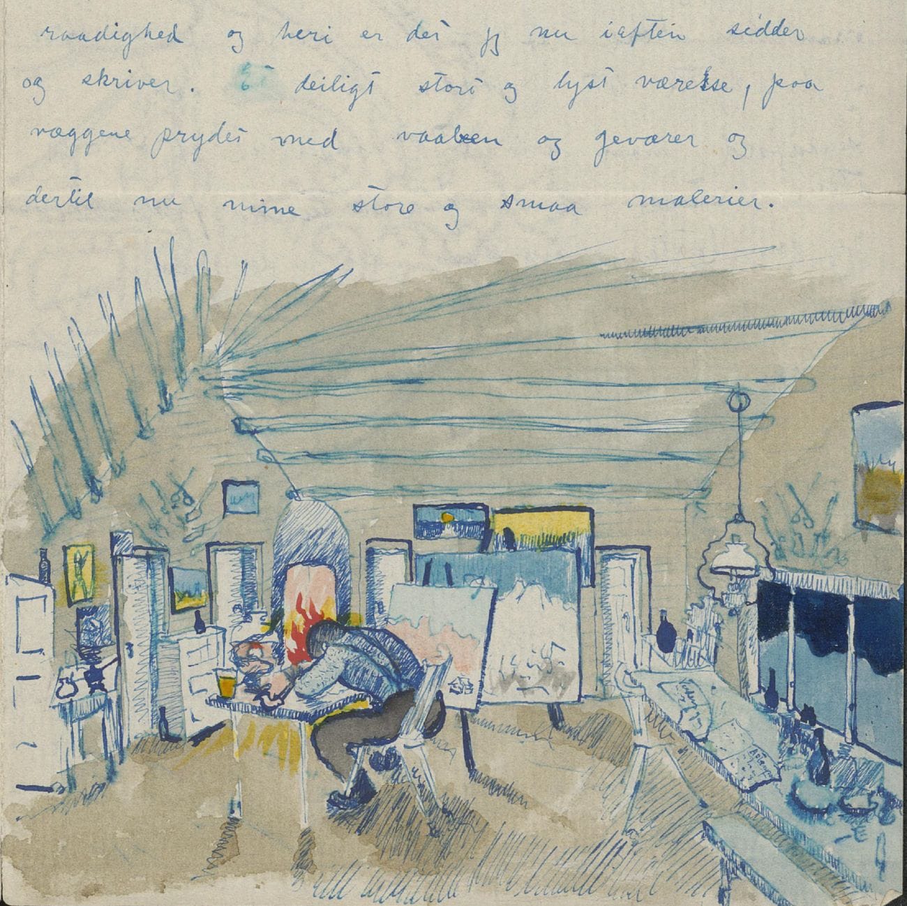 I sitt arbeid med nasjonalmaleriet «Vinternatt i Fjellene» med Rondane som selve Fjellene, arbeidet Harald Sohlberg gjennom et halvt år med dette motivet fra peisestua på Sør-Nesset. Han ønsket senere seg tilbake dit, men da bodde søstrene Guldberg der selv. Sohlberg fullførte arbeidet med bildet på gården Nordre Nesset i forkant av Jubileumsutstillingen i Kristiania 1914.