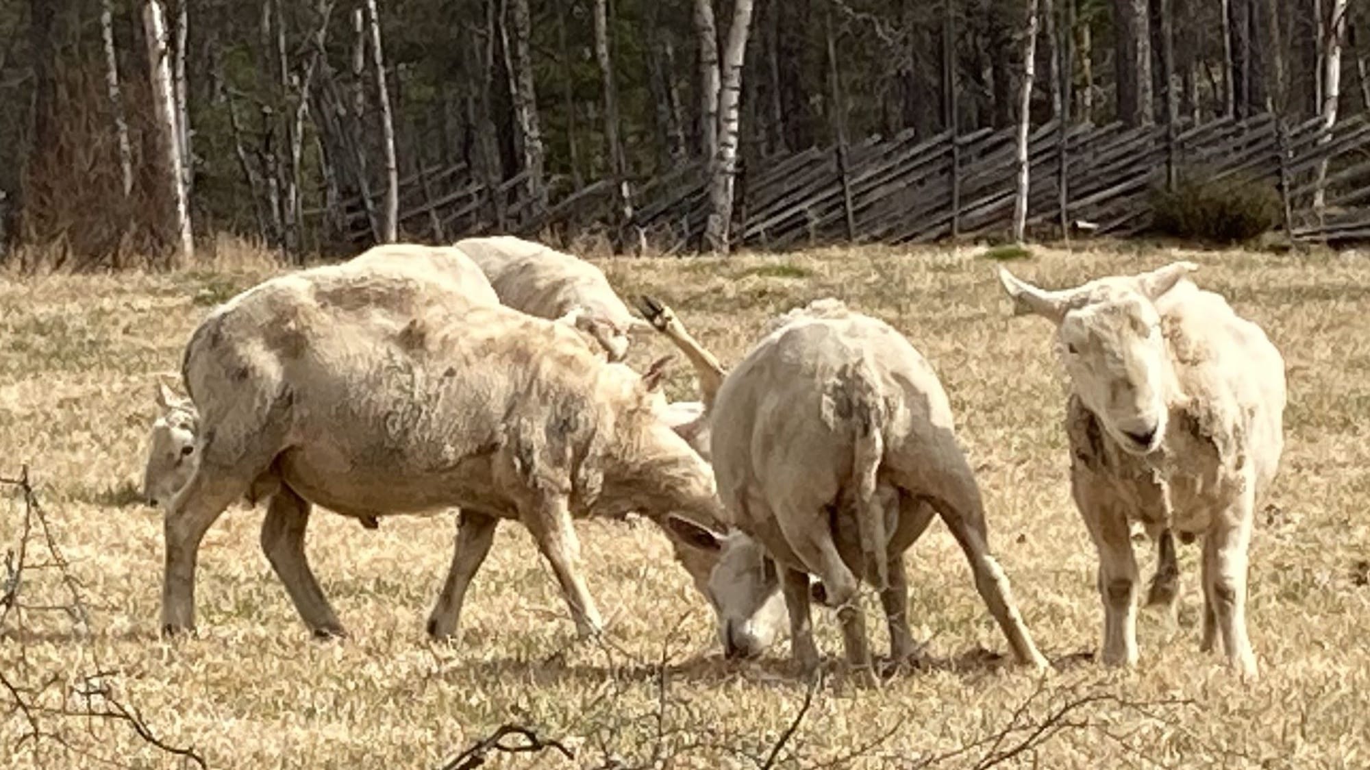 Det gikk hardt for seg da de vårkåte veddene til Ole Anton Brænd slapp ut av sauefjøset. Hvem er sterkest og tøffest mon tro? Det vil forhåpentligvis avgjøres uten at noen av dem skader seg alvorlig, for det er viktig at de er i god form når de skal på "damebesøk" til høsten.