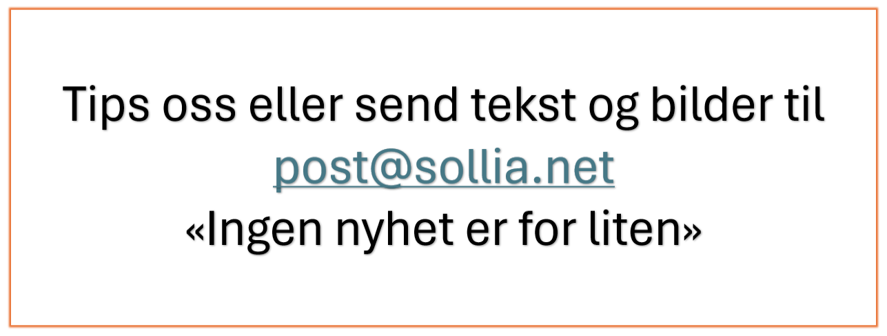 Nå drar redaksjonen på høstferie og det vil bli lagt ut minimalt med nytt stoff på et par uker. Send gjerne inn stoff eller bilder til post@sollia likevel så vi får noe å legge ut når vi kommer hjem.