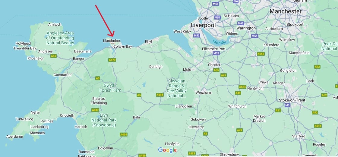 La oss nå innlede med å sette Llandudno på kartet. Det er byen vi skal bo i under oppholdet vårt. Dette står å lese om Llandudno på Wikipedia: