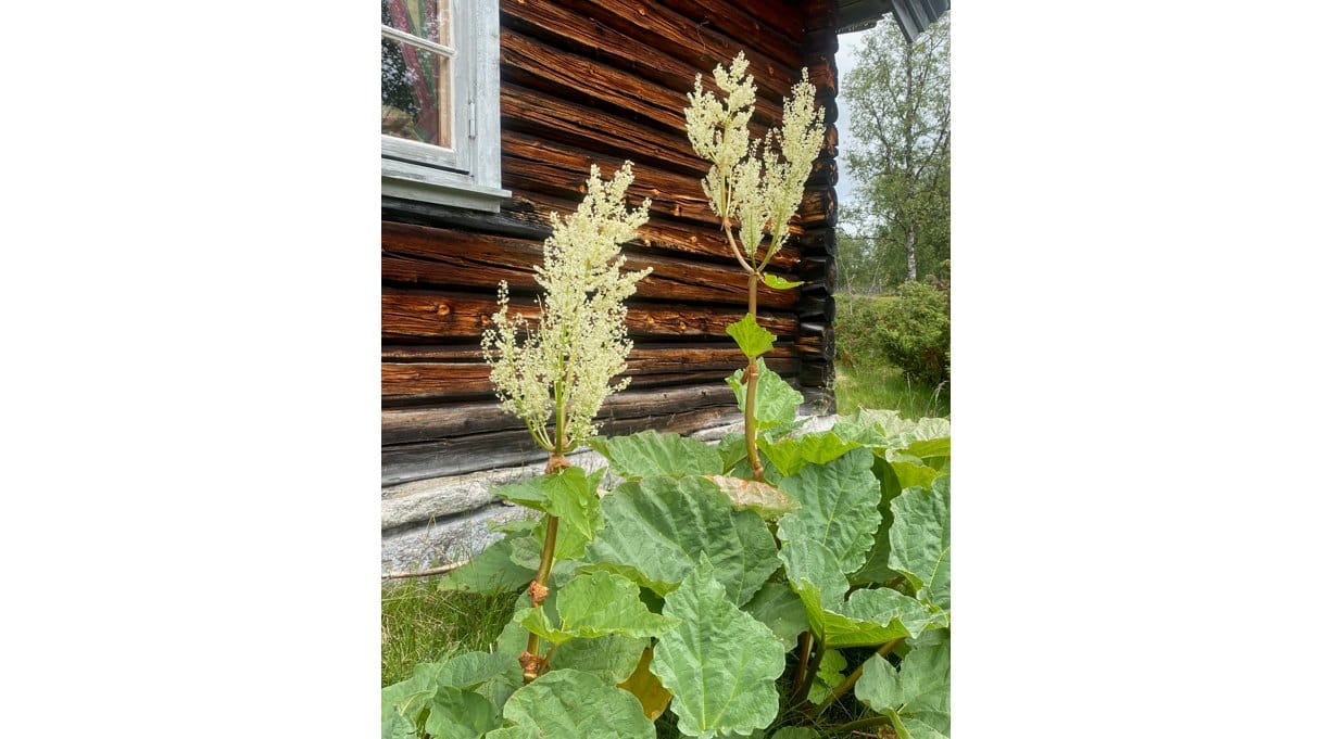 Rabarbra, rips-, solbær- og stikkelsbærbusker og ei tue med grasløk sto gjerne i solveggen på mange bruk.