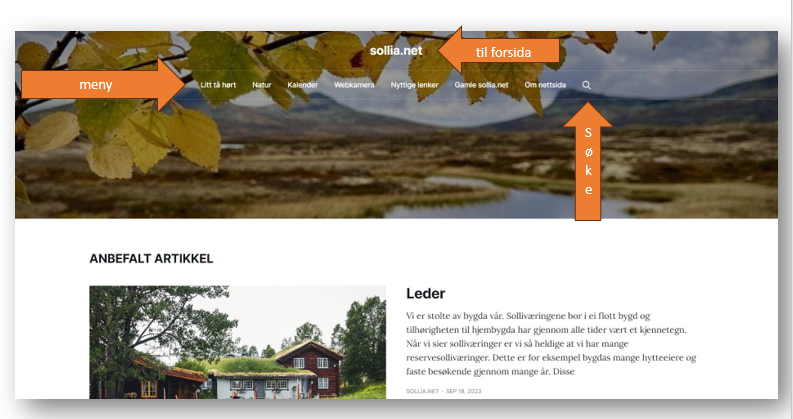 PÅ MOBILEN: Det viktigste er at når du trykker på sollia.net øverst til venstre kommer du alltid til forsida der de nyeste innleggene ligger. Hvis du trykker på de to strekene øverst til høyre kommer du til menyen. Der kan du trykke deg videre til webkameraet for eksempel.