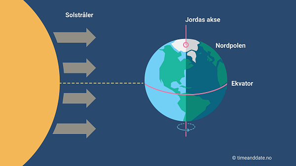 På den nordlige halvkule blir dagene lengre og lengre fram til 21. juni og nord for polarsirkelen er det ikke natt i det hele tatt om sommeren.